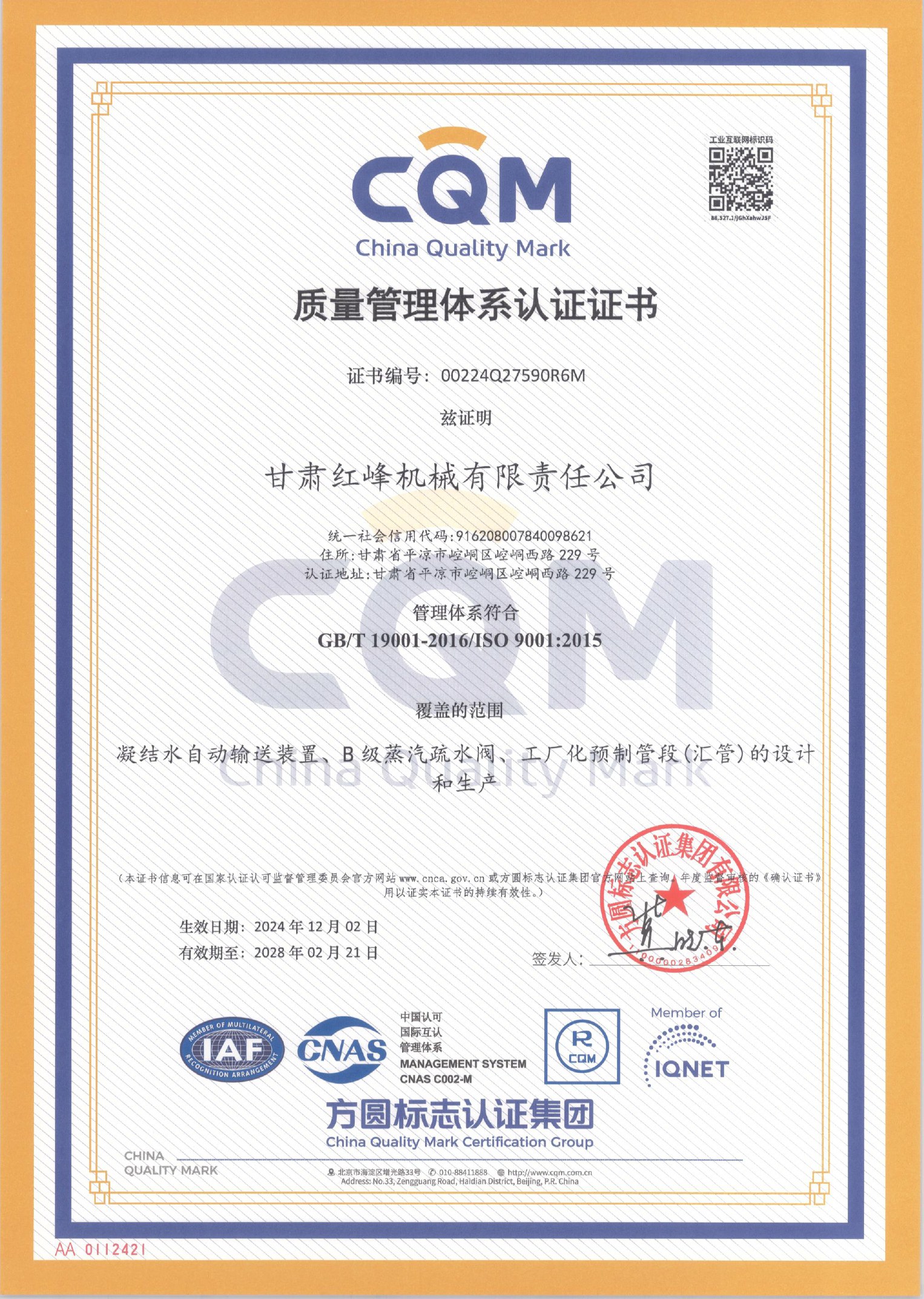 公司基于蒸汽系統(tǒng)對泵閥設備可靠性、穩(wěn)定性、耐用性、安全性的嚴格要求,建立了包括采購管理、生產(chǎn)控制、性能驗證、質(zhì)量檢驗、售后服務等在內(nèi)的一整套質(zhì)量保證和控制體系,全心全意為優(yōu)質(zhì)產(chǎn)品保駕護航。