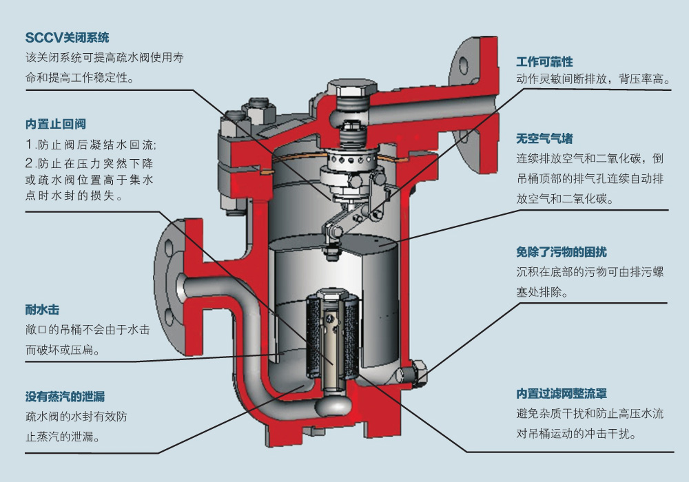 機械型疏水閥是利用凝結(jié)水與蒸汽的密度差,通過凝結(jié)水液位變化,使浮子升降帶動閥瓣開啟或關閉,實現(xiàn)阻汽排水功能的疏水閥。機械型疏水閥的過冷度小,不受工作壓力和溫度變化的影響,有水即排,加熱設備里不存水,能使加熱設備顯著提高換熱效率,具有工作性能穩(wěn)定、排水量大、使用壽命長等特點。