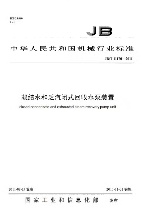 凝結(jié)水和乏汽閉式回收水泵裝置 試驗(yàn)方法