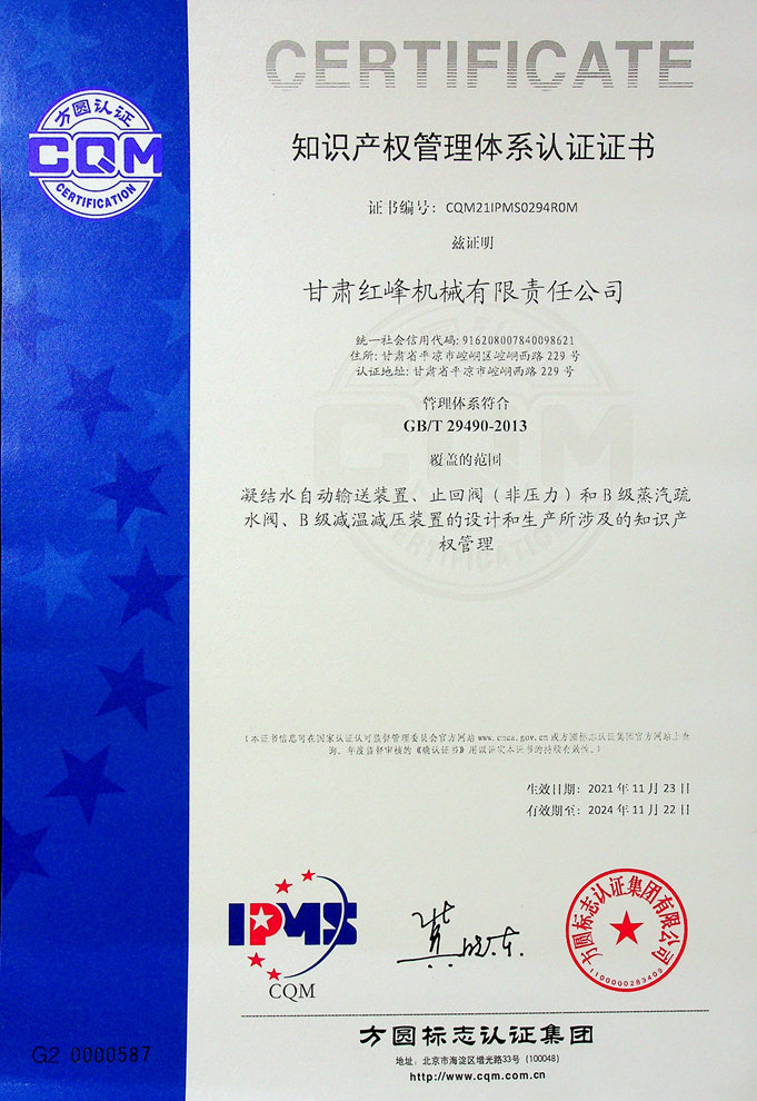 知識產(chǎn)權(quán)管理體系認證證書