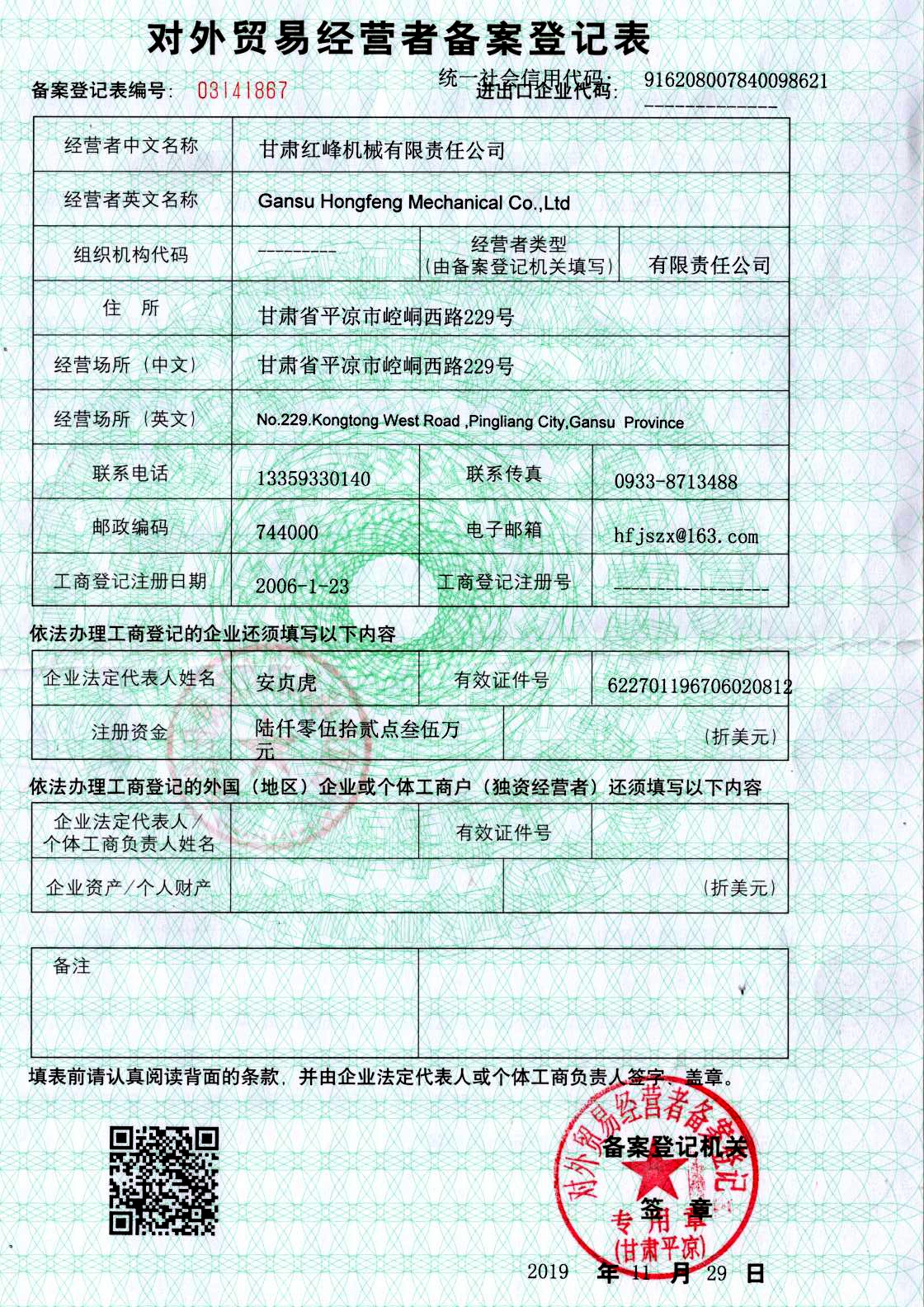 對外貿(mào)易經(jīng)營者備案證書