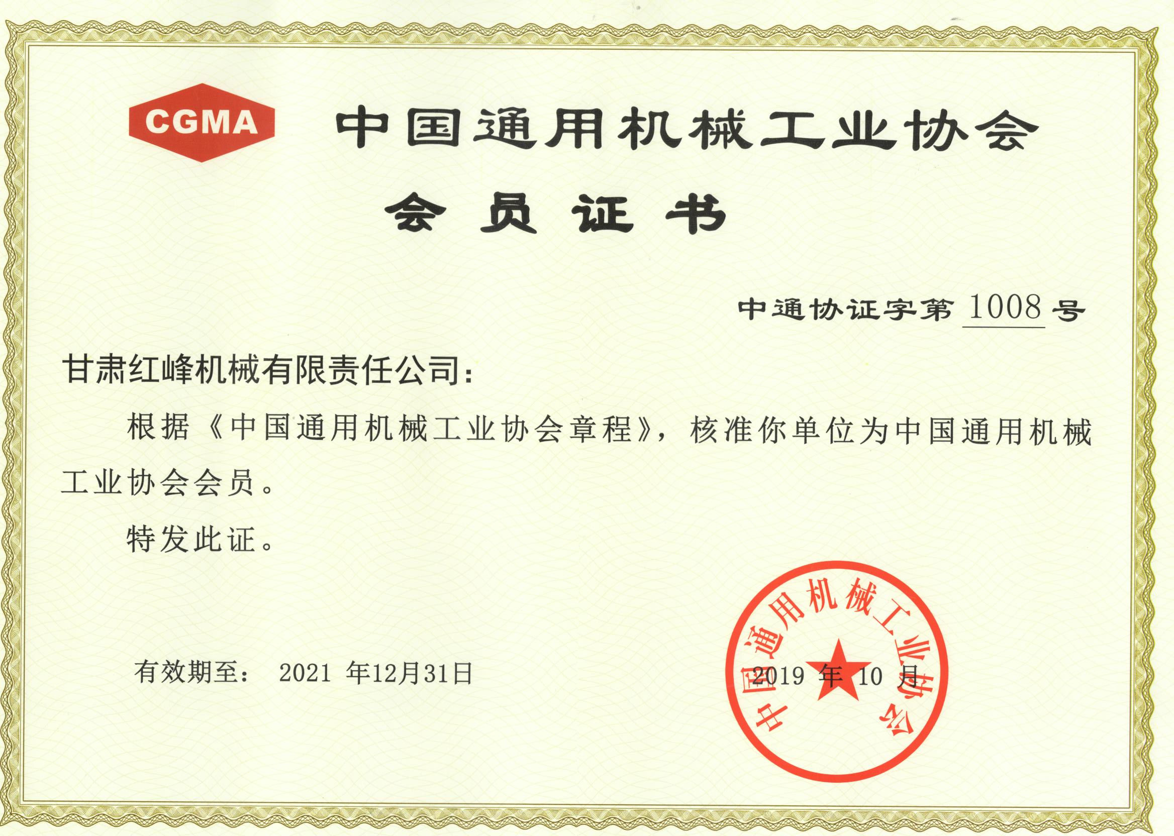 2019年中國通用機械工業(yè)協(xié)會會員證