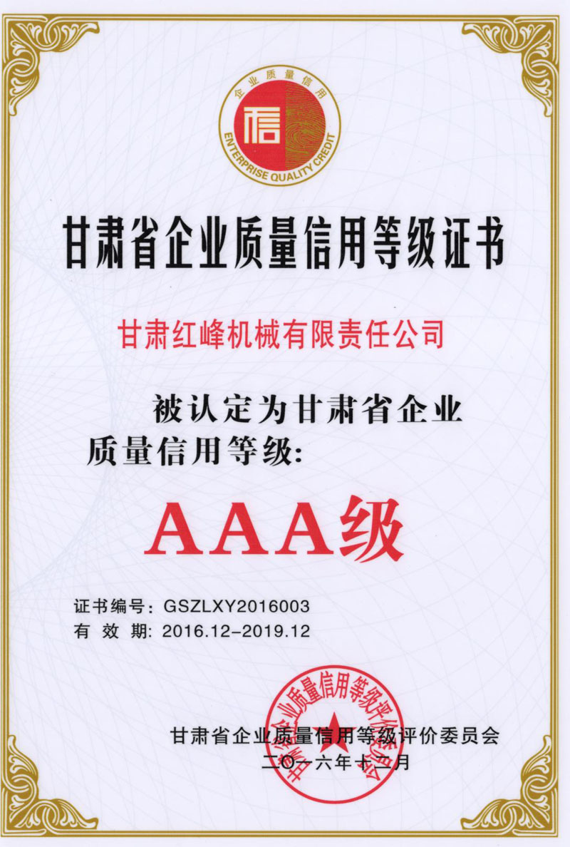 2016年甘肅省企業(yè)質(zhì)量信用等級證書