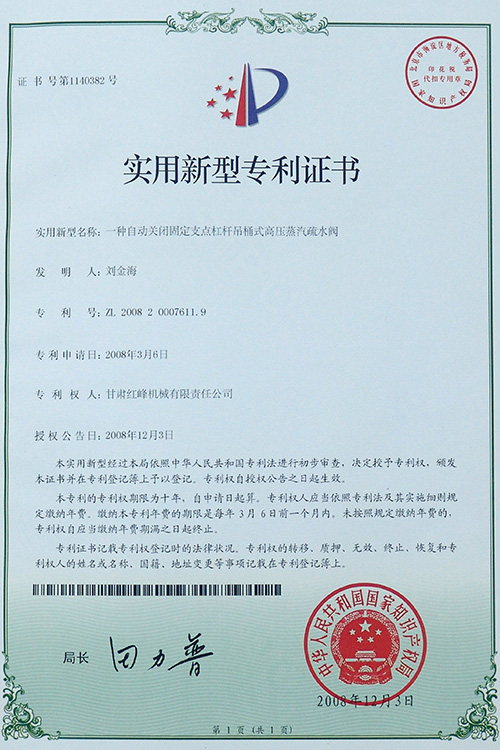 一種自動關閉固定支點杠桿吊桶式高壓蒸汽疏水閥