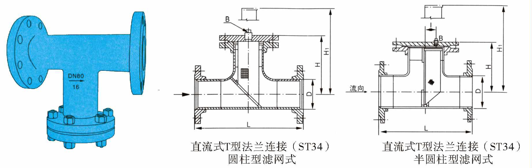 法蘭連接直流式T型過濾器安裝于進(jìn)水管路中各配套閥門的前端,當(dāng)管道中的介質(zhì)首先進(jìn)入過濾器時(shí),介質(zhì)通過濾網(wǎng)進(jìn)入被連接的閥門中,而雜質(zhì)則留于過濾桶內(nèi),使各類閥門不會(huì)由于機(jī)械雜物卡入密封圈而失靈。