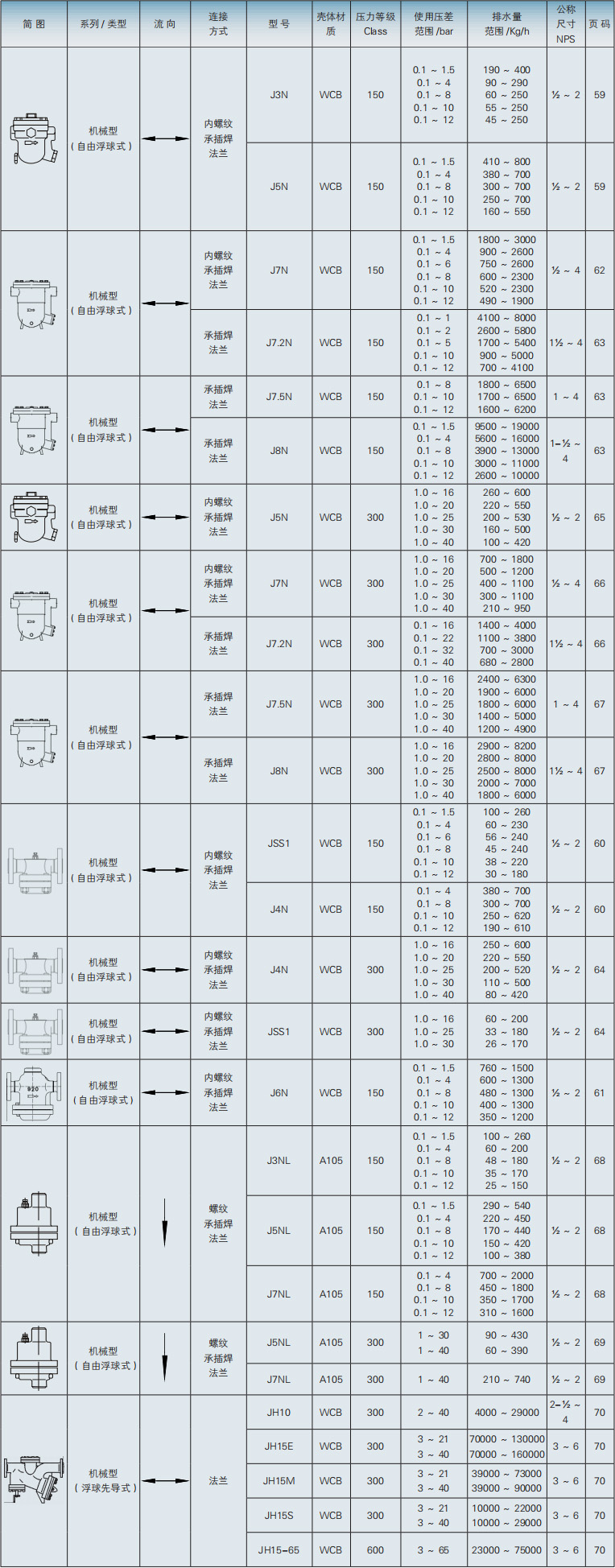 用途 : 適用于飽和蒸汽主管﹑伴熱管線﹑蒸汽加熱設備和凝結水回收系統(tǒng)。